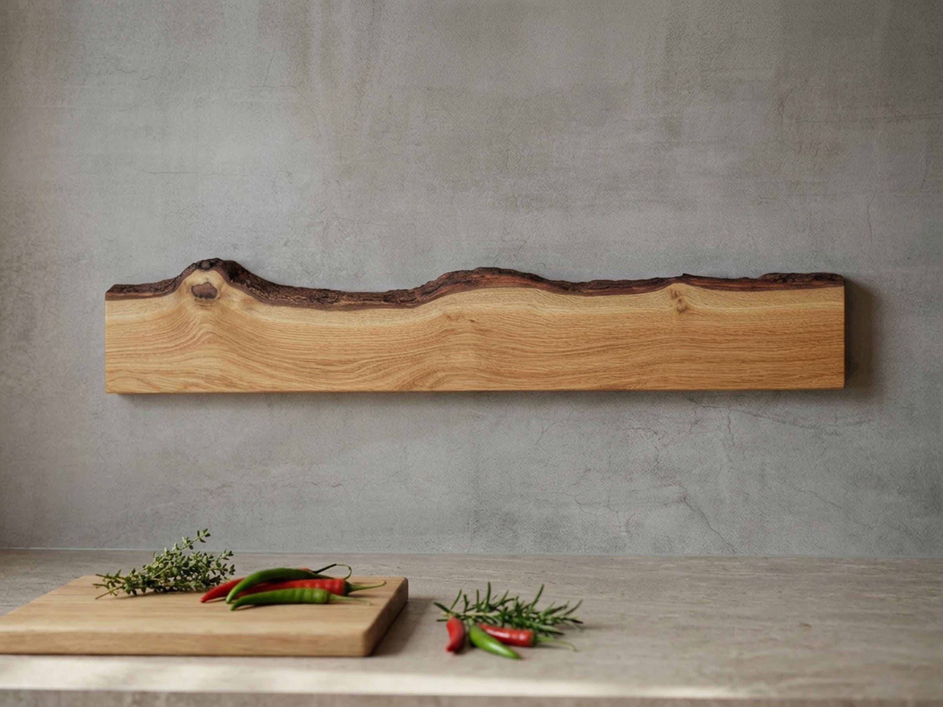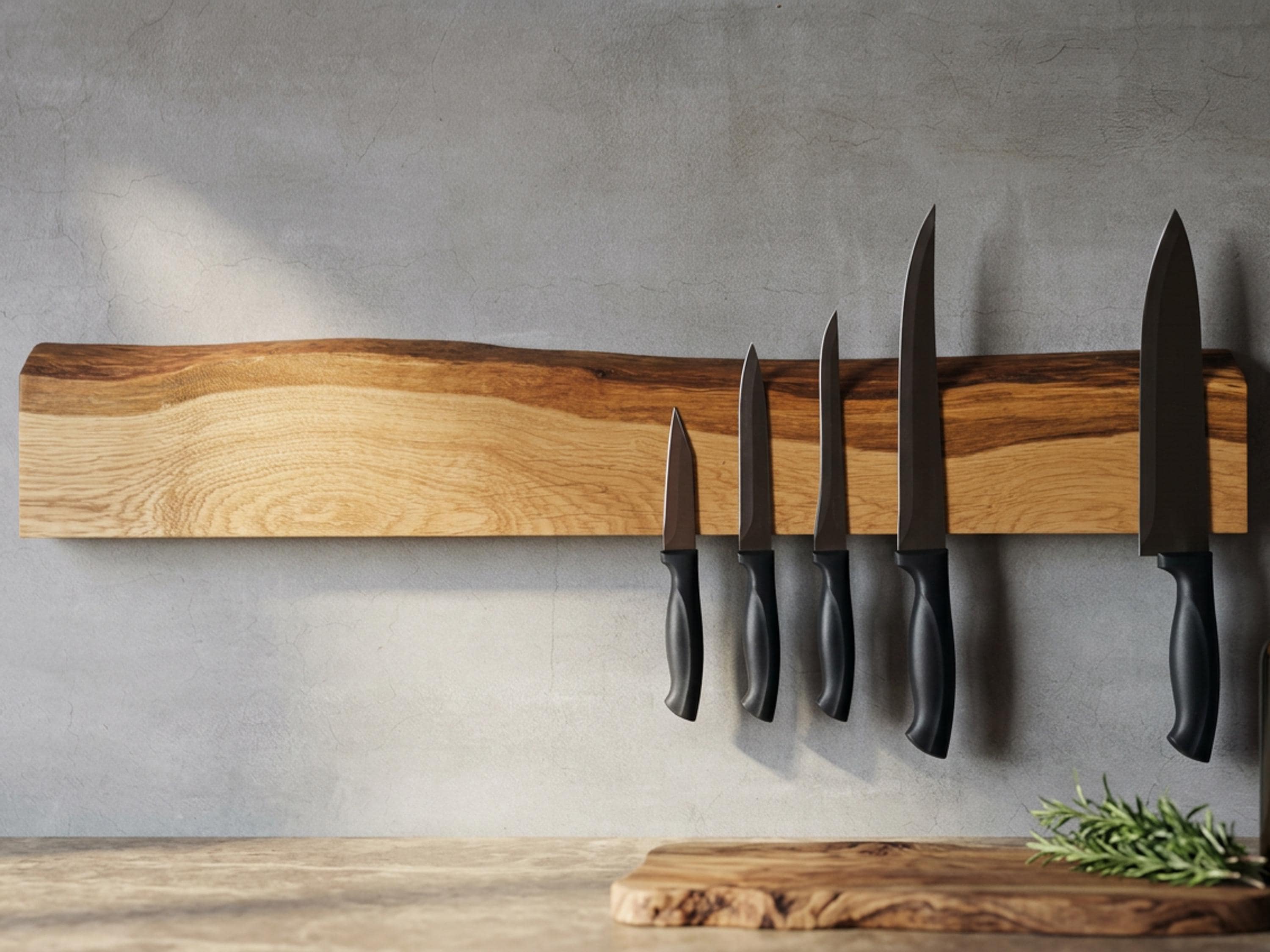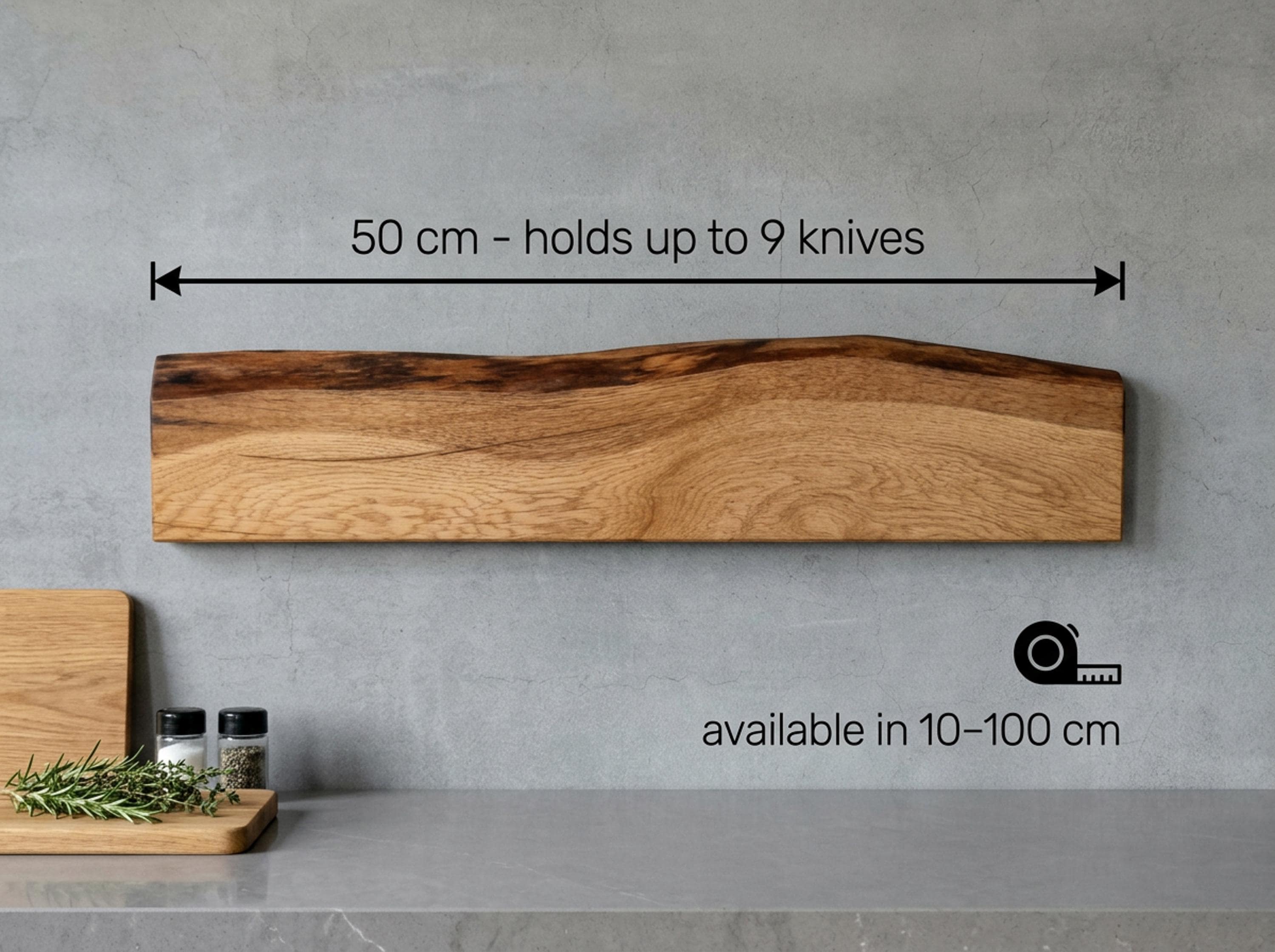 Magnetic knife rack, solid oak | natural live edge | strong magnets | space-saving wall mounting
