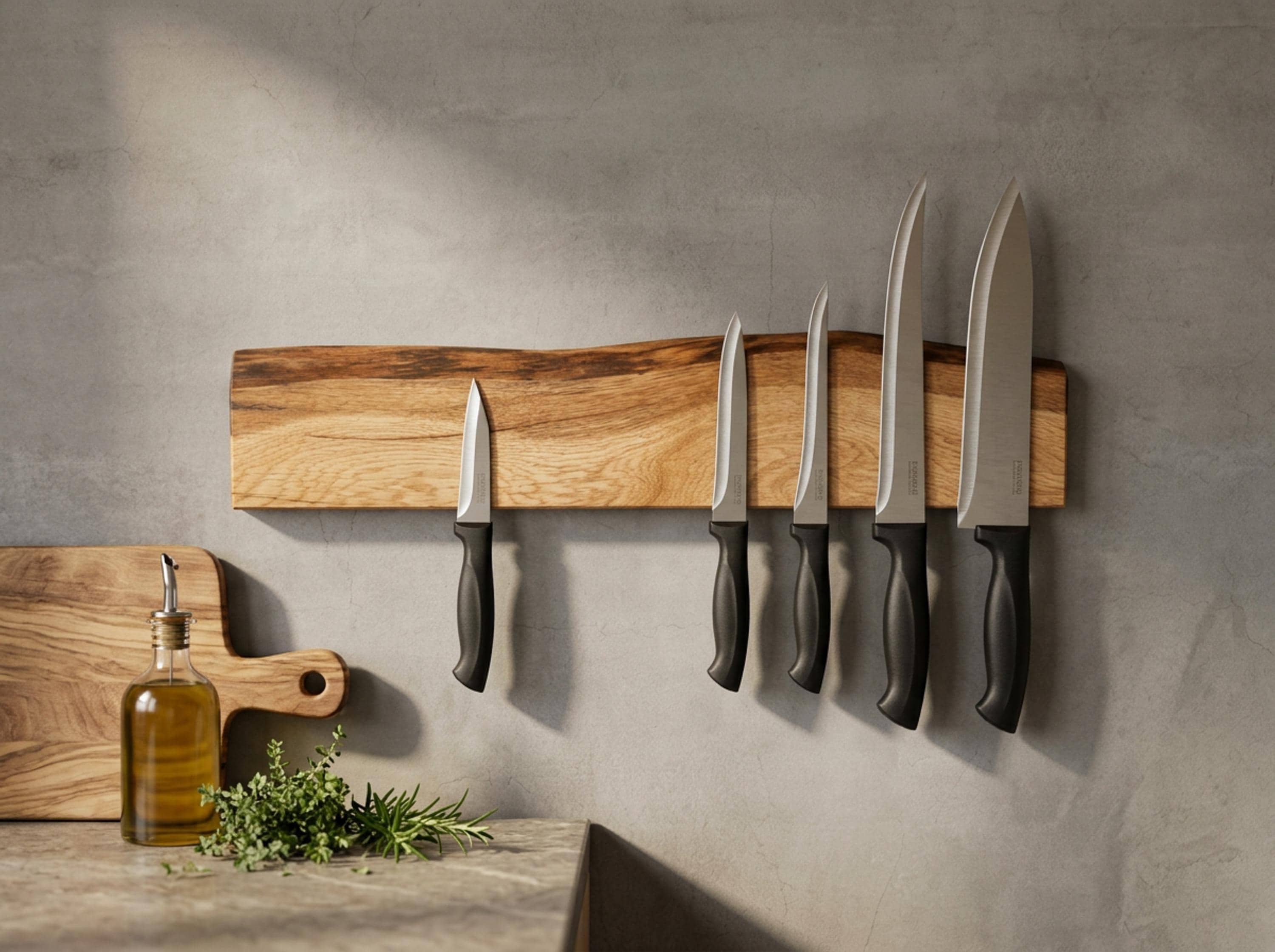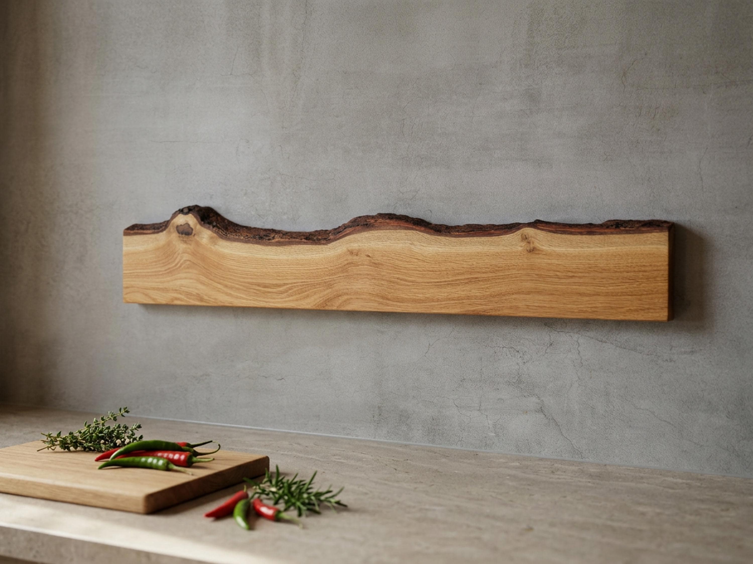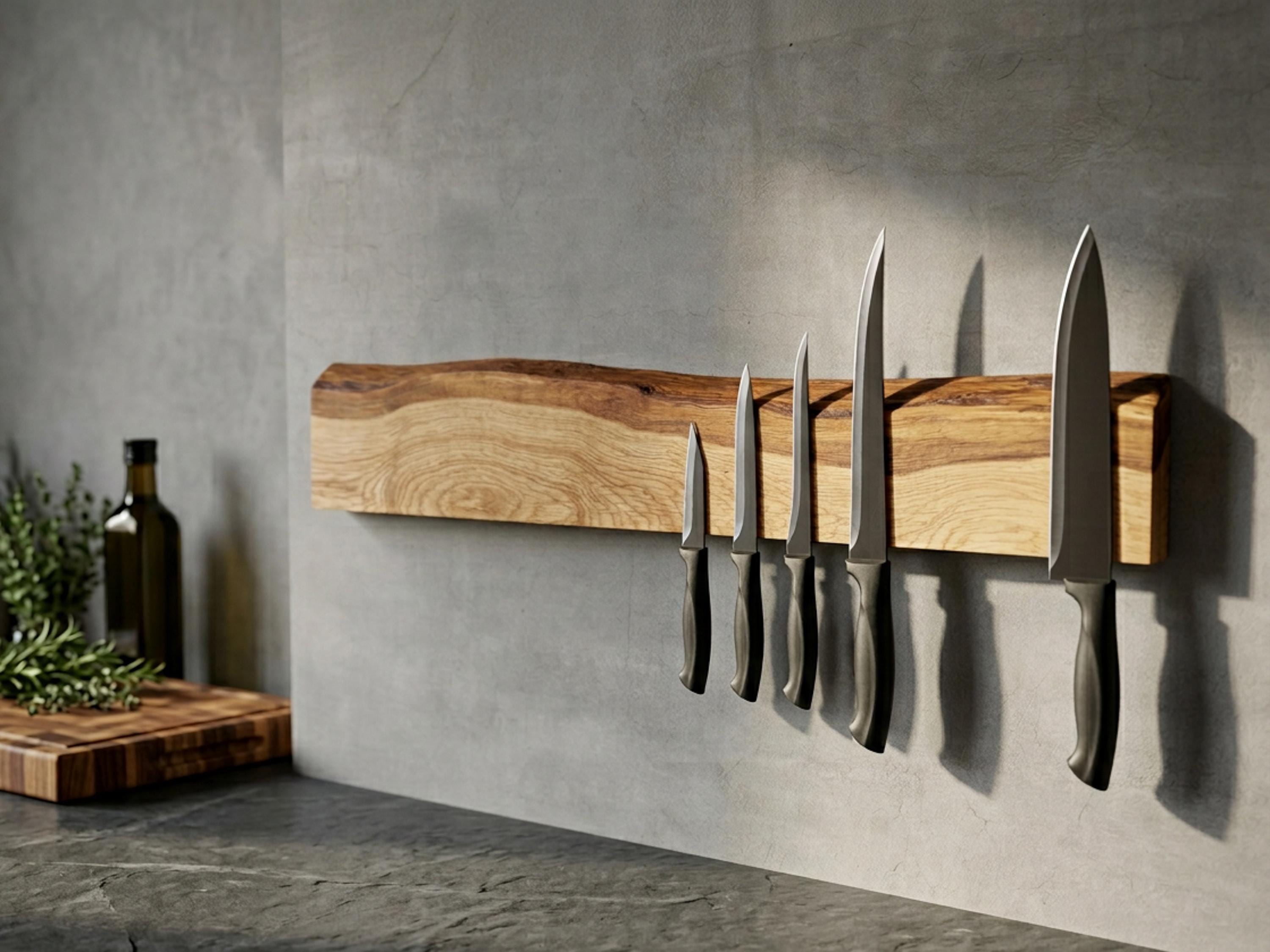 Magnetic knife rack, solid oak | natural live edge | strong magnets | space-saving wall mounting